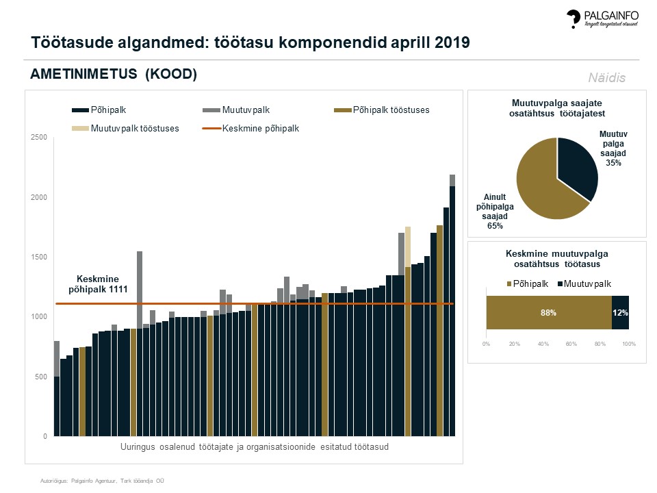 Esitatud andmed: põhipalk ja muutuvpalk, s.t regulaarsed lisatasud, sh seadusega ettenähtud tasud, tulemustasud ja muud regulaarsed lisatasud. Kõrval oleval graafikul on esitatud muutuvpalga saajate osatähtsus ning keskmine muutuvpalga osatähtsus töötasus nende töötajate osas, kellele muutuvpalka maksti.