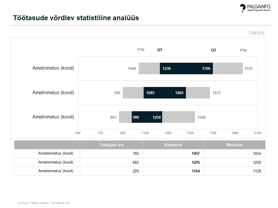 Analüüs annab võrdleva ülevaate valitud ametite töötasude vahemikest, keskmisest ja mediaanist vaatluskuul.
