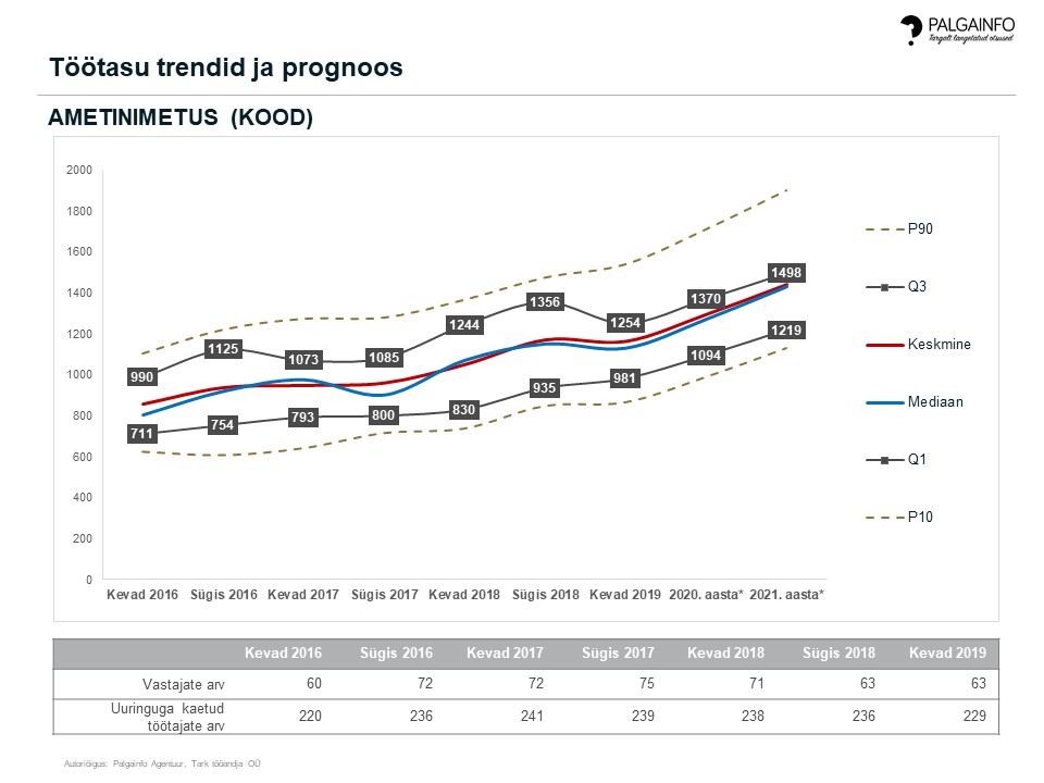 Analüüs annab ülevaate, kuidas on muutunud ametite töötasude vahemikud, keskmised ja mediaanid uuringu perioodide jooksul, samuti on esitatud töötasu prognoos.