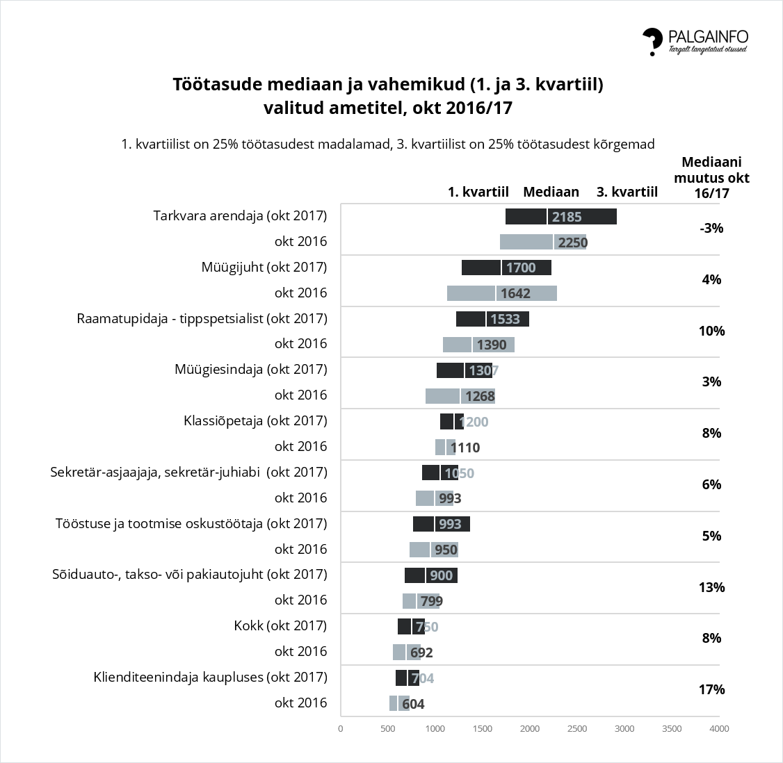 „Mitte kunagi varem ei ole olnud võimalik teenida Eestis nii kõrget palka kui praegu,“ ütles tööportaali CVKeskus.ee Baltikumi kommunikatsioonijuht Henry Auväärt. „Tööjõupuudus survestab paljusid tööandjaid uute töötajate värbamisel oma palgatasemeid üle vaatama ja ühtlasi muutma palgapoliitika läbipaistvamaks – praegusel ajal avaldatakse 25%–30% tööpakkumistest juba koos avaliku palganumbriga.“